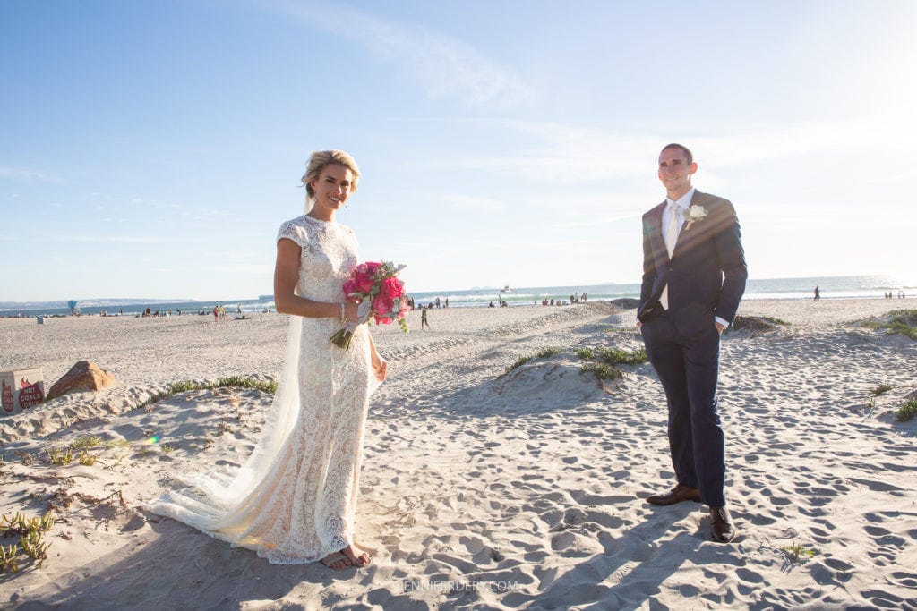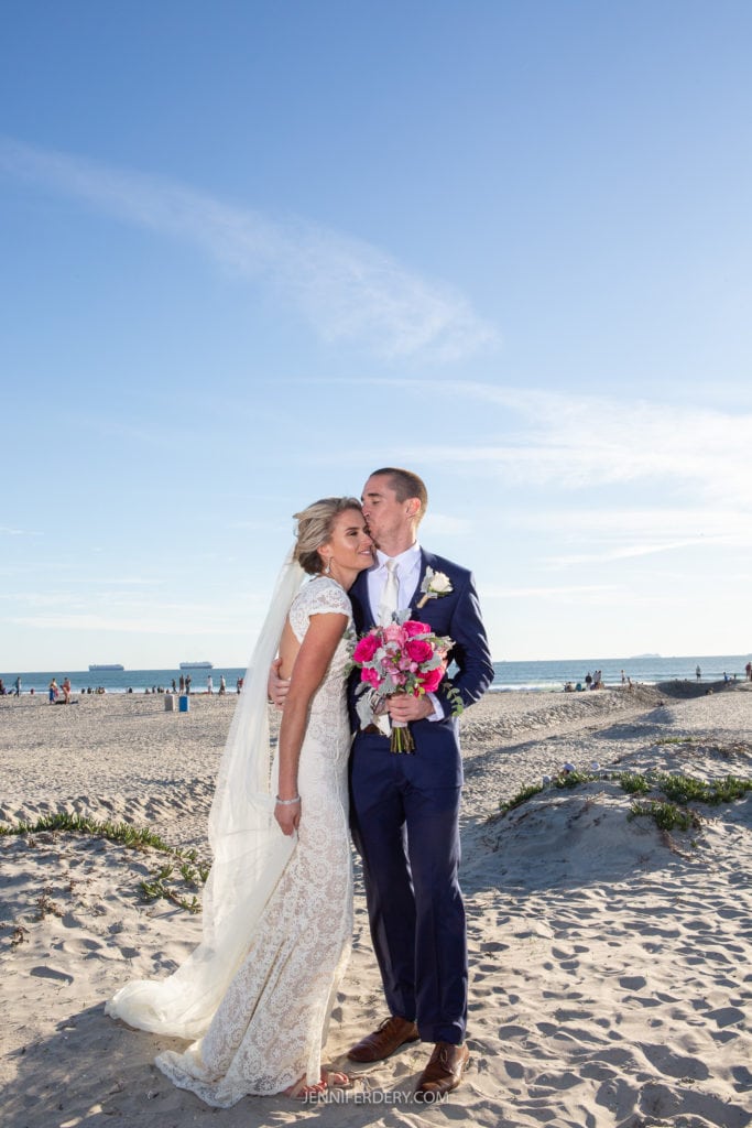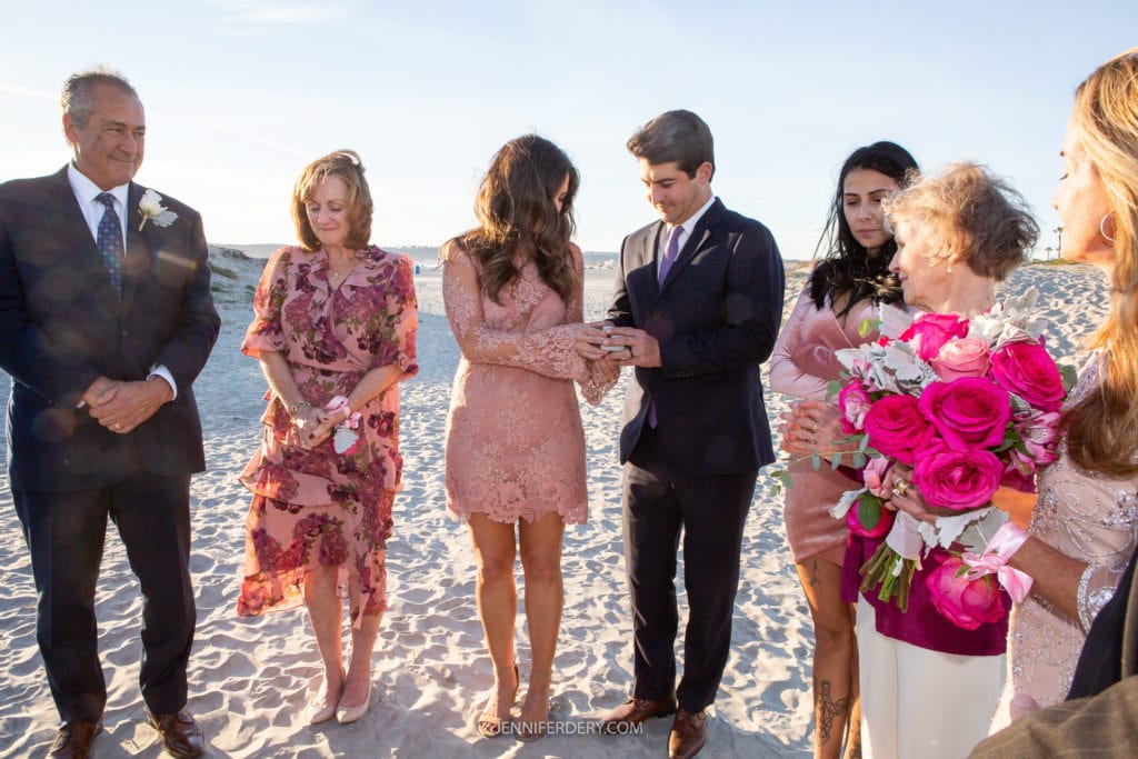 Today’s wedding was one of those amazing December days. It was sunny, beautiful, but, uh, FREEZING! Did I say it was cold? Everyone kept their chin up and just dealt with the frigid wind luckily. Andrew & Lauralee put together a lovely ceremony in the round, passed their rings to their family to bless and tied the knot right in the comfortable crook of the letter “C” in the Coronado sand dunes. Did you know the dunes right next to the Hotel Del actually spell the word Coronado? Pretty cool!