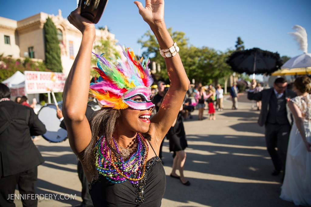 Most notably? Their second line parade. This New Orleans inspired tradition involves a procession from the wedding to the reception, and while it can be a great deal of fun, it was no easy feat to pull off through Balboa Park.